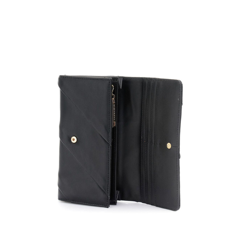 Portafoglio effetto pelle con pattina pieghe e logo cafènoir in metallo.