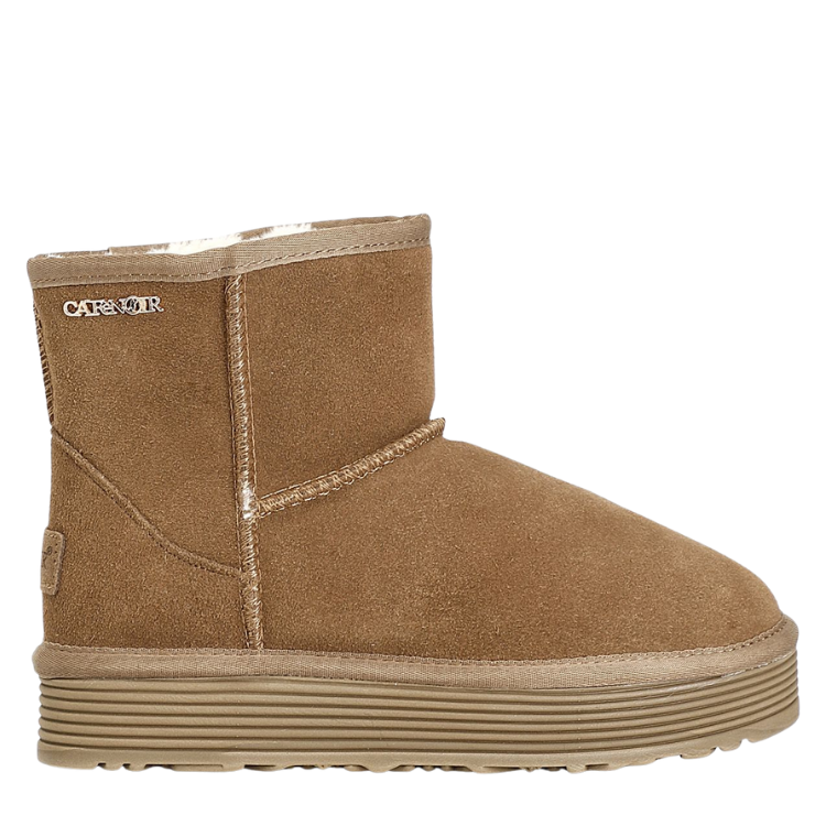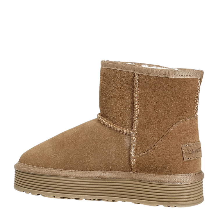 Tronchetti in pelle scamosciata con interno in pelliccia sintetica. plateau alto 35mm. logo cafènoir in metallo posizionato sul gambale