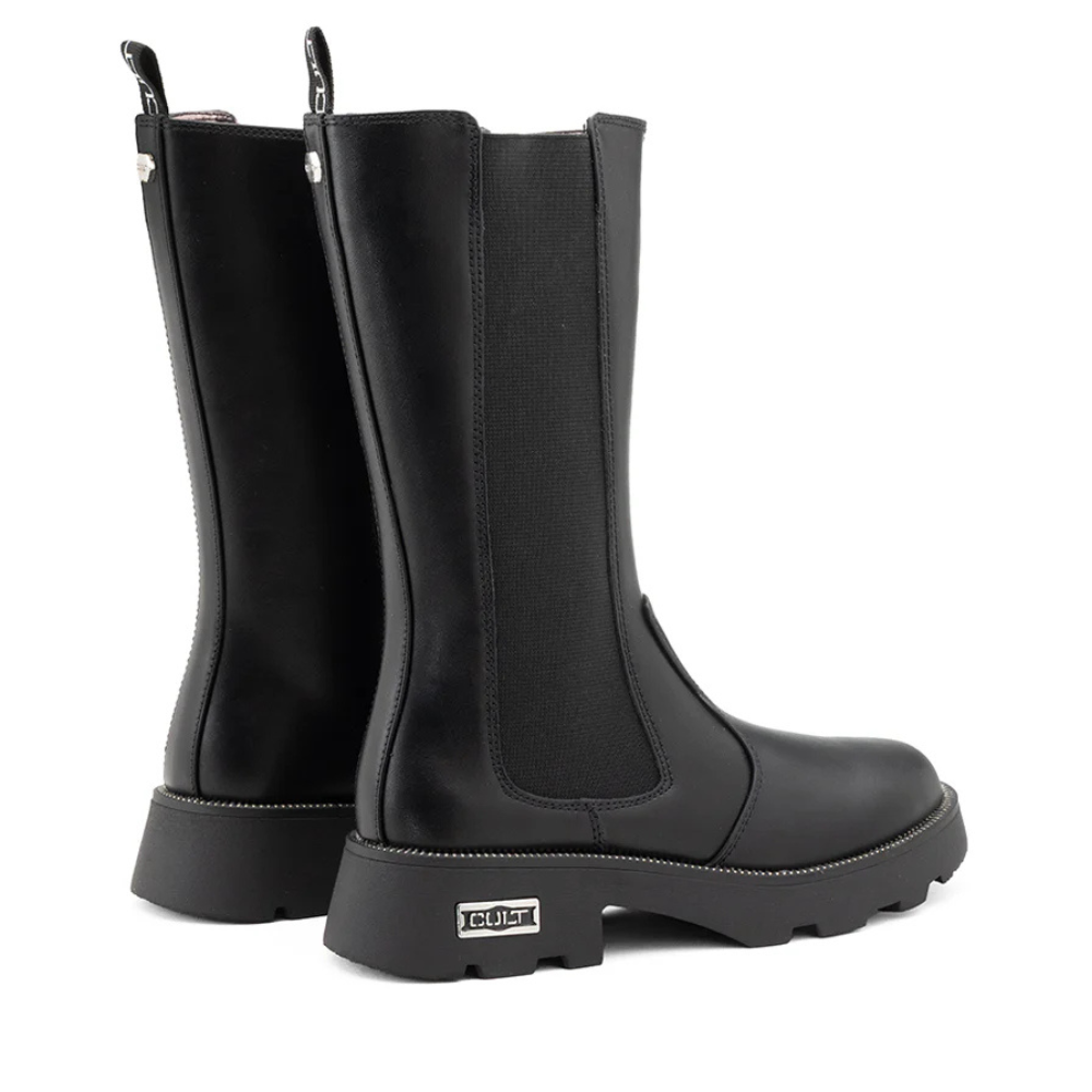 Perfetti per un look di carattere, questi stivali firmati Cult Young con fascia elastica sul gambale e caratterizzati dall'iconica targhetta metallica con il logo del brand. Realizzati in ecopelle nera liscia, sono sostenuti da una suola in gomma a elevata aderenza e reattività.