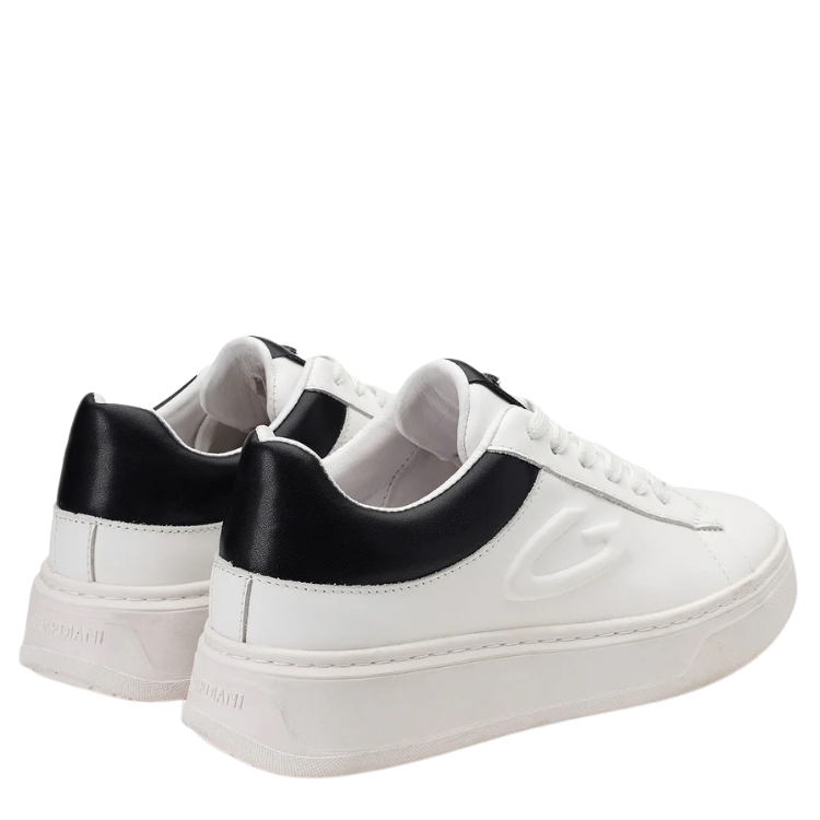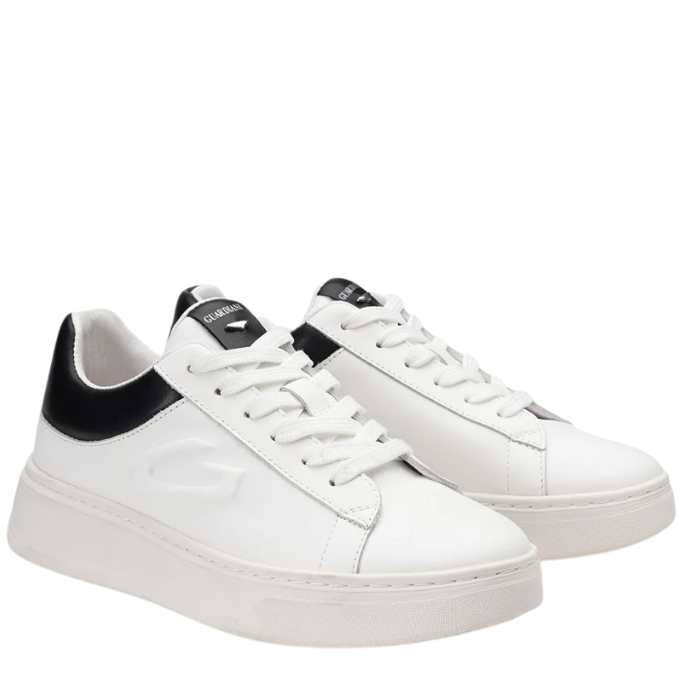 Queste sneakers bianche sono le calzature immancabili nel guardaroba per tutte le stagioni. Questo modello in pelle bianca liscia con la linguetta e contrafforte a contrasto poggia su una suola ergonomica, slancerà i vostri passi in pantaloni o jeans e giacca con attitudine very cool.