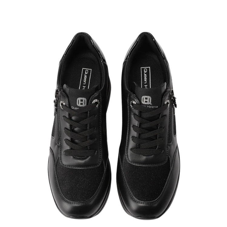 Queen Helena Scarpe da Donna con zeppa e zip laterale Art.X33-27 Col.Nero