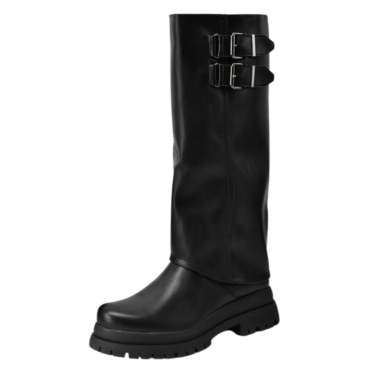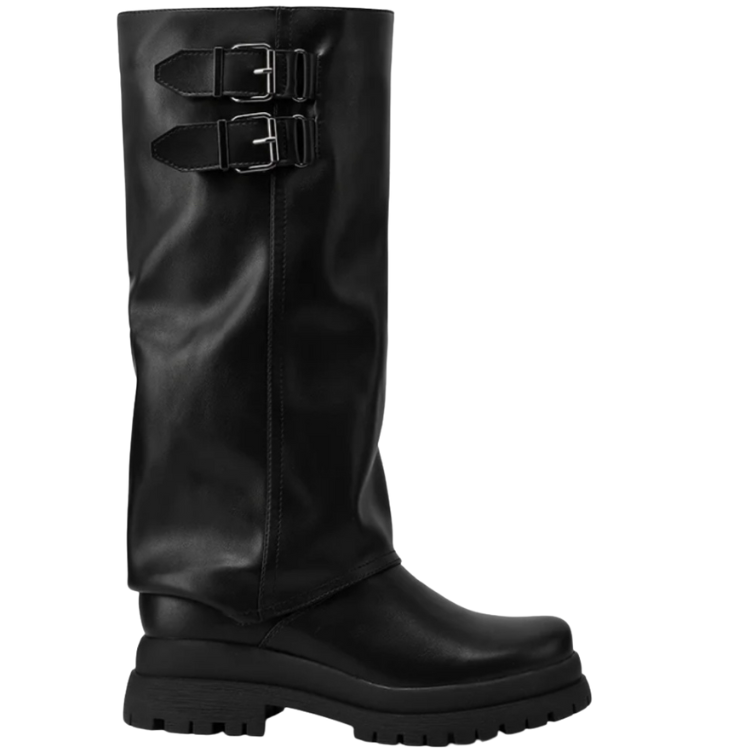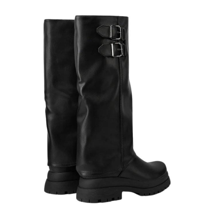 Queen Helena Stivale da Donna con fibbie e suola carrarmato Art.X33-94 Col.Nero