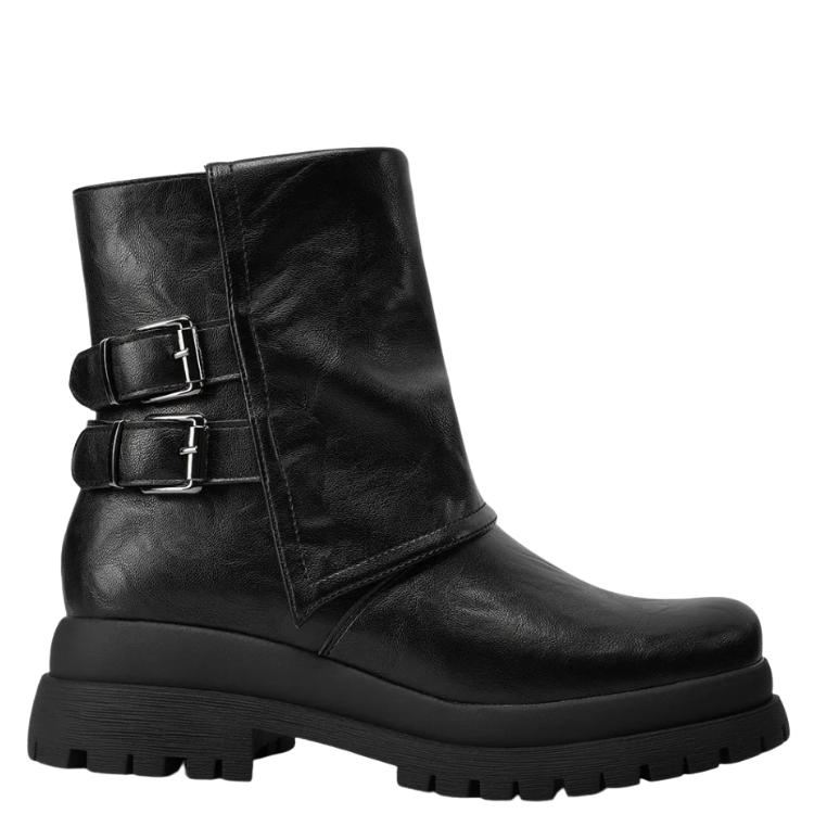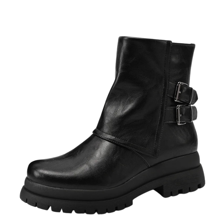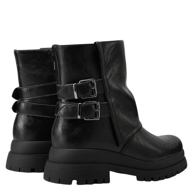 Queen Helena Stivaletti da Donna con fibbie laterali e suola carrarmato Art.X33-96 Col.Nero